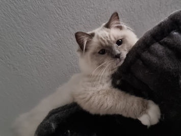 Le Ragdoll est un chat très sociable, doux, docile, paisible. Il adore suivre ses maîtres à la trace. Il est apprécié pour son caractère affectueux et la douceur de son poil. Le Ragdoll est un gentil géant extrêmement attaché à ses maîtres. Il n'hésitera pas d'ailleurs à les suivre partout. Il est également surnommé le « chat-chien »